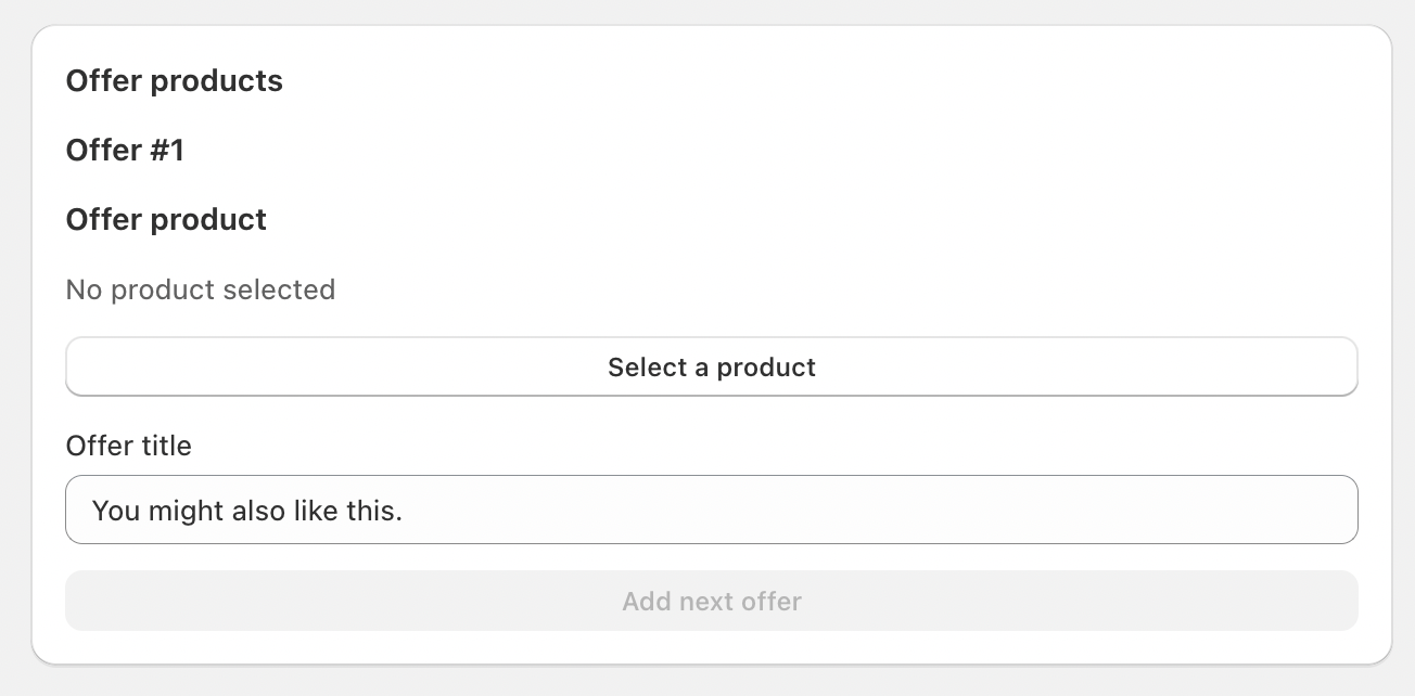 Offer #1 – Select a product to be shown as the first offer.