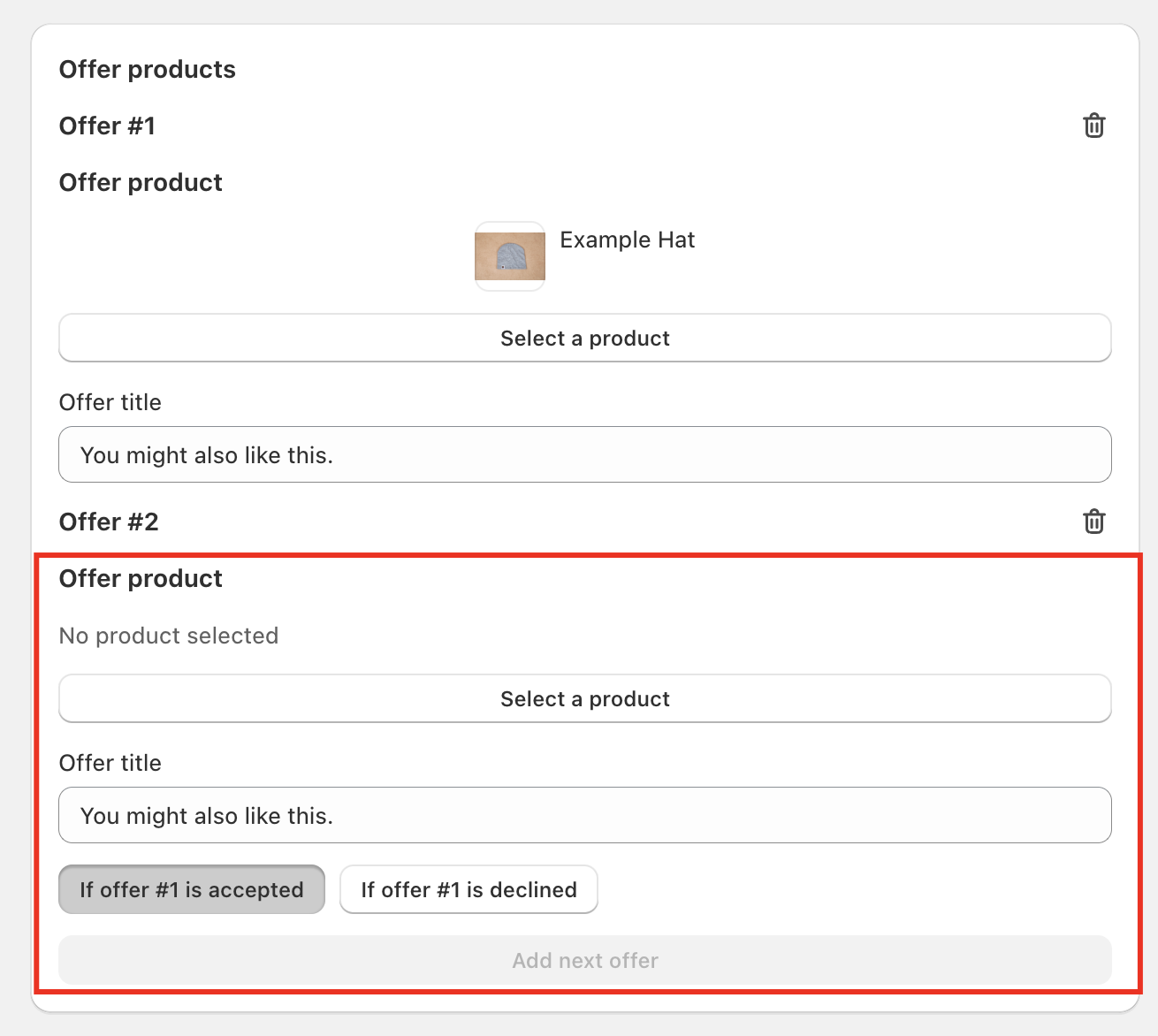 Offer #3 – Select a different product to show if Offer #2 is accepted.
