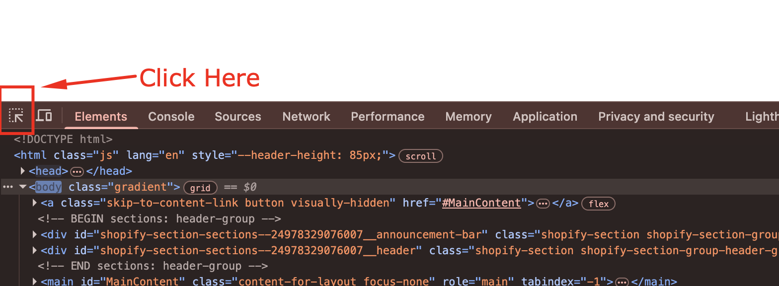If the attribute name="checkout" or the id checkout is missing, copy the class name from the highlighted element instead.